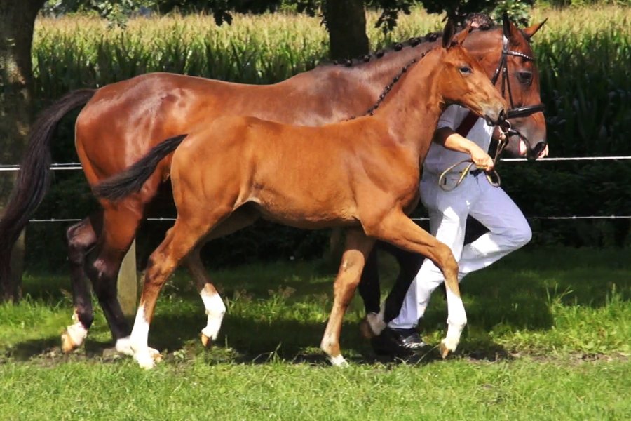Voor nakomelingen van Diamant de Semilly springt iedereen in de auto. De sportcarrière van de Grand Prix hengst ligt al lang achter zich. Maar inmiddels zijn het de nakomelingen van Diamant die overal furore maken. Een uitstekende uitgangspositie voor veilingitem Mewaldine. Die in moeder Phewaldine ook nog eens een oude concoursbekende heeft. Zij sprong onder de naam Eurocommerce Camberra met Gerco Schroder tot en met 1.40m niveau. En bewees zich ook al in de fokkerij waar drie van haar nakomelingen al tot op dezelfde hoogte zijn gekomen. Grootmoeder Jewladine is op haar beurt een zus van Nante (v. Concorde) die eveneens tot en met een hoogte van 1.40m sprong. Met in de vierde generatie het gewaardeerde bloed van Pericles xx lijkt alles aan deze Mewaldine in de goede richting te vallen.